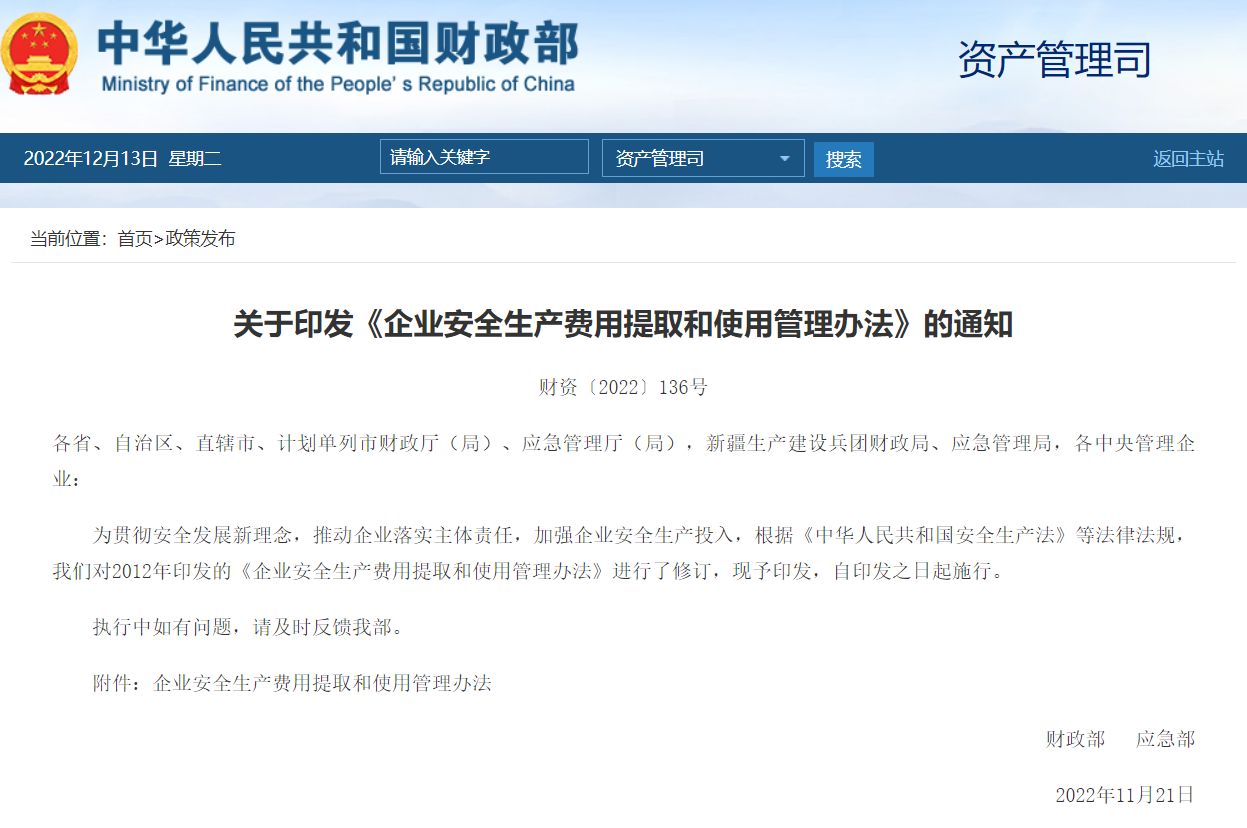 關(guān)于印發(fā)《企業(yè)安全生產(chǎn)費(fèi)用提取和使用管理辦法》的通知