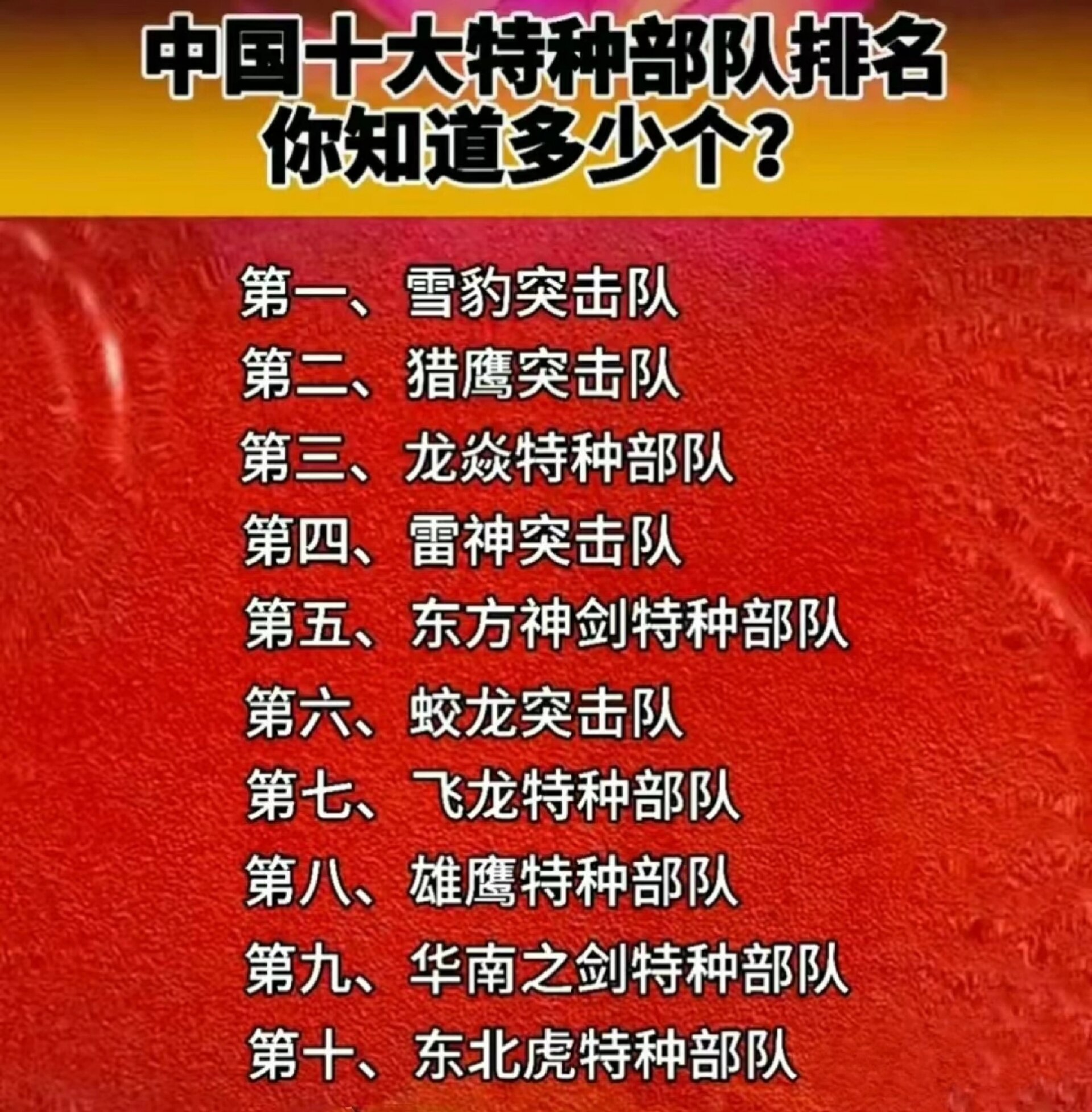 中國特種部隊排行榜前十名,中國特種部隊排行榜前十名揭曉