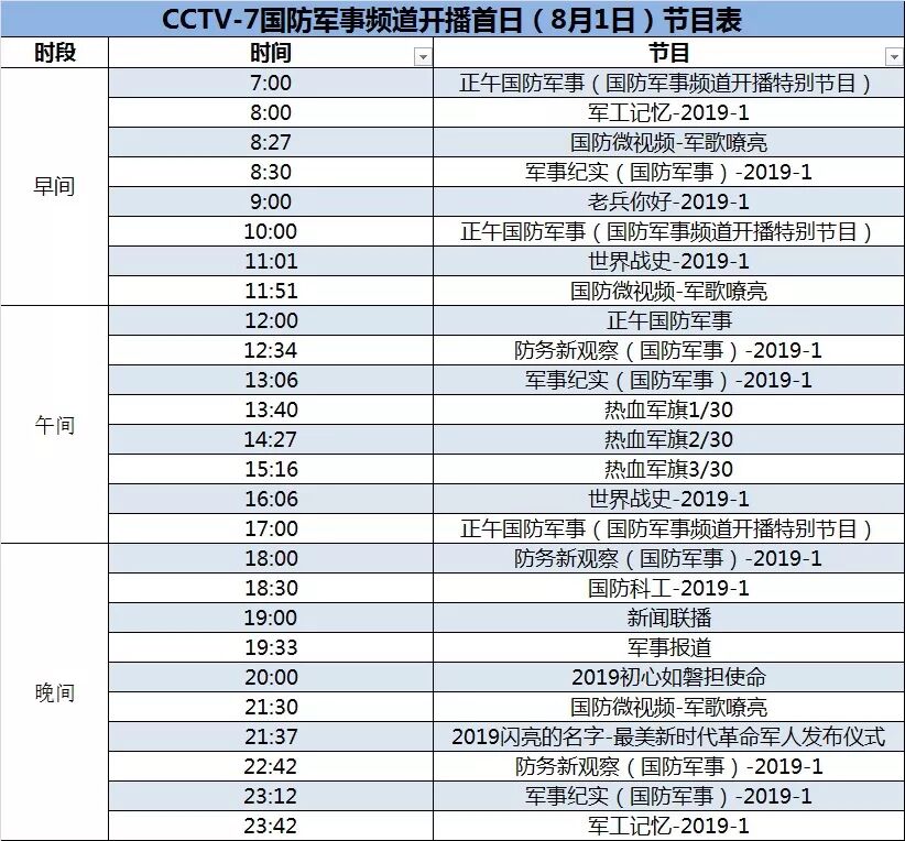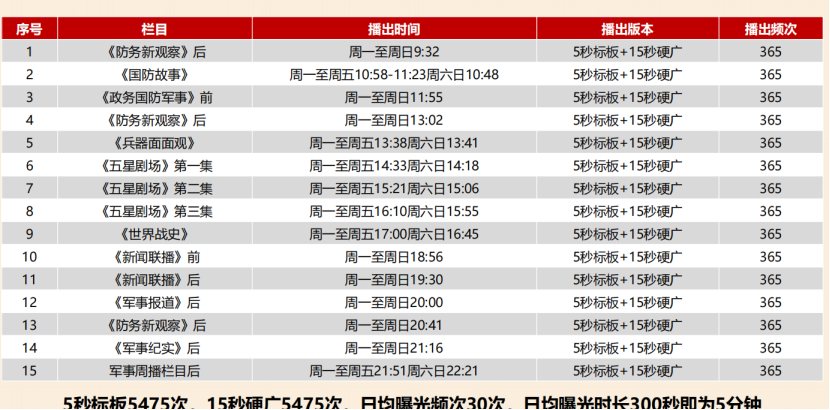 CCTV7軍事頻道節(jié)目表