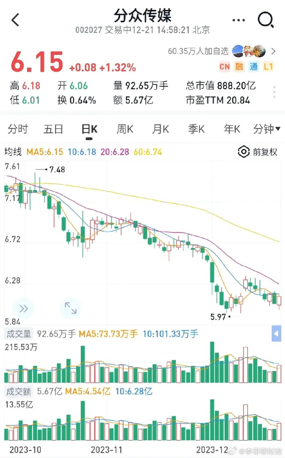 分眾傳媒股吧是投資者們關(guān)注分眾傳媒的重要平臺之一,投資者們可以了解公司的最新動態(tài)、業(yè)績報告、行業(yè)趨勢等信息,股吧內(nèi)的討論熱度反映了投資者們對分眾傳媒的關(guān)注度,同時也為公司與投資者之間搭建了一個溝通交流的橋梁。